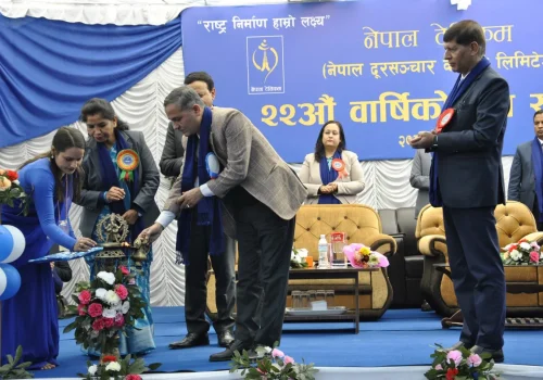 काठमाडौँ। नेपाल टेलिकमले आफ्नो स्थापनाको २२औँ वार्षिकोत्सव आज (२०८२ माघ २२) देशभर विविध कार्यक्रमसहित मनाएको छ। कम्पनीको केन्द्रीय कार्यालयसहित सबै प्रादेशिक निर्देशनालय तथा कार्यालयहरूमा वार्षिकोत्सव कार्यक्रम सम्पन्न... विस्तृतमा