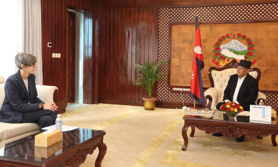 काठमाडौँ , २४ असोज | प्रधानमन्त्री पुष्पकमल दाहाल ‘प्रचण्ड’ सँग नेपालका लागि स्विजरल्याण्डका नवनियुक्त राजदूत एच.ई. दनाइली म्युवली वाइडले शिष्टाचार भेट भएको छ । भेटको अवसरमा नेपाल र स्विजरल्याण्डबीचको द्विपक्षीय सहयोगका विषयमा छलफल भएको प्रधानमन्त्री कार्यालयले जनाएको छ ।