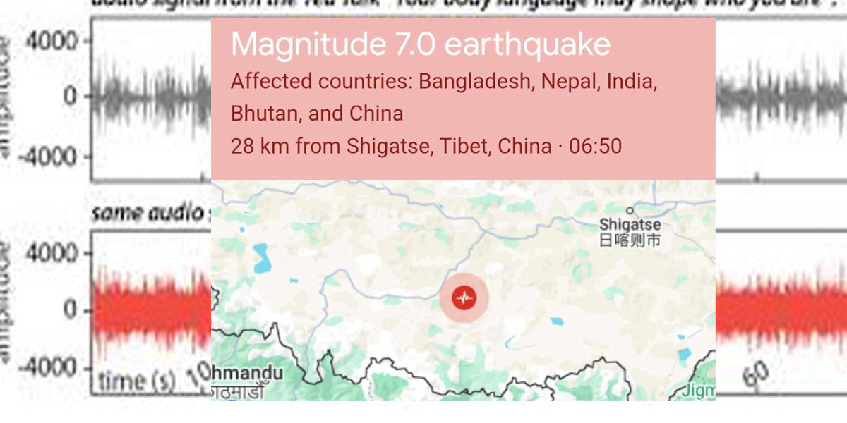आज बिहान नेपाल-चीन सीमानाको तिब्बतको दिंगे कान्टी क्षेत्रमा केन्द्रविन्दु भएर ७ म्याग्निच्युडको शक्तिशाली भूकम्प गएको पुष्टि भएको छ। खानी तथा भूगर्भ विभागका अनुसार यस भूकम्पले नेपालका अधिकांश स्थानमा धक्का दिएको छ।