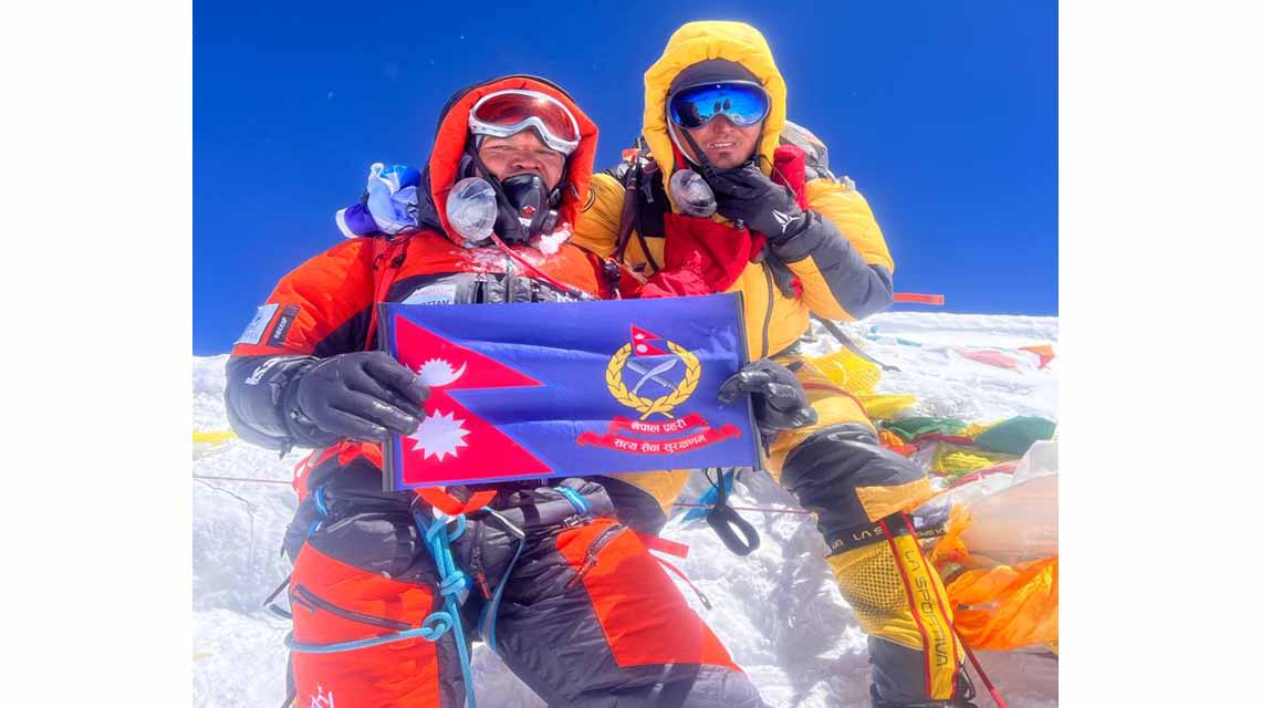 काठमाडौं, ४ जेठ | अन्तर्राष्ट्रिय प्रहरी संगठन (इन्टरपोल)को १००औं सदस्यता प्राप्त गरेको नेपालले इन्टरपोलको शताब्दी वर्ष भव्यताका साथ मनाउने कार्यक्रम अन्तर्गत नेपाल प्रहरीको प्रतिनिधित्व गर्दै पहिलो पटक प्रहरी वरिष्ठ नायव निरीक्षक पुरूषोत्तम नेपालीले २०८० जेठ २ गते मंगलबार बिहान १०:१५ बजे विश्वको सर्वोच्च शिखर सगरमाथाको सफलतापूर्वक आरोहण गरेका छन् । उक्त अवसरमा आरोही नेपालीले सगरमाथाको चुचुरोमा नेपालको राष्ट्रिय झण्डा सहित नेपाल प्रहरी तथा इन्टरपोलको झण्डा फहराउन सफल भएका छन् ।