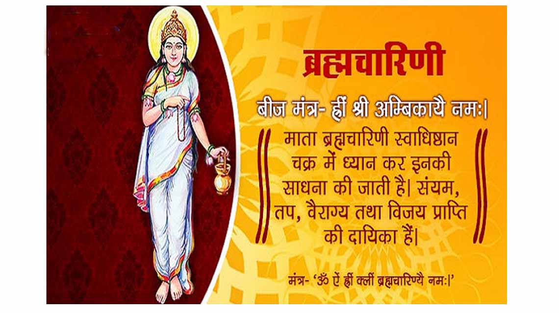 संसारका मुमुक्षु प्राणीलाई सच्चिदाननद रुप ब्रह्मको बोध गराउनका लागि निरन्तर लागिरहने मान्यतामा नवदुर्गामध्येकी दोस्री देवीलाई ब्रह्मचारिणी भनिएको हो । ब्रह्मचारिणीका हातमा कमल, अक्षमाला र कमण्डलु बनाइनुपर्छ भन्ने विधान छ ।