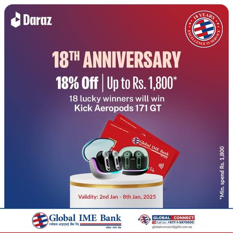 ग्लोबल आइएमई बैंकको १८औं वार्षिकोत्सवको अवसरमा दराजमा १८ प्रतिशत छुट