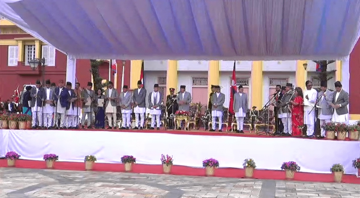 गत असार १७ गते बनेको कांग्रेस–एमाले नेतृत्वको नयाँ समीकरणमा मन्त्रालयको पनि भागबन्डा मिलेको छ । जसअनुसार कांग्रेसले १०, एमालेले ८, जसपाले २ र लोसपाले १ जना मन्त्रीको नाम पठाएका छन् । नवनियुक्त प्रधानमन्त्री ओली र मन्त्रीहरूले अहिले शपथ लिँदैछन् ।