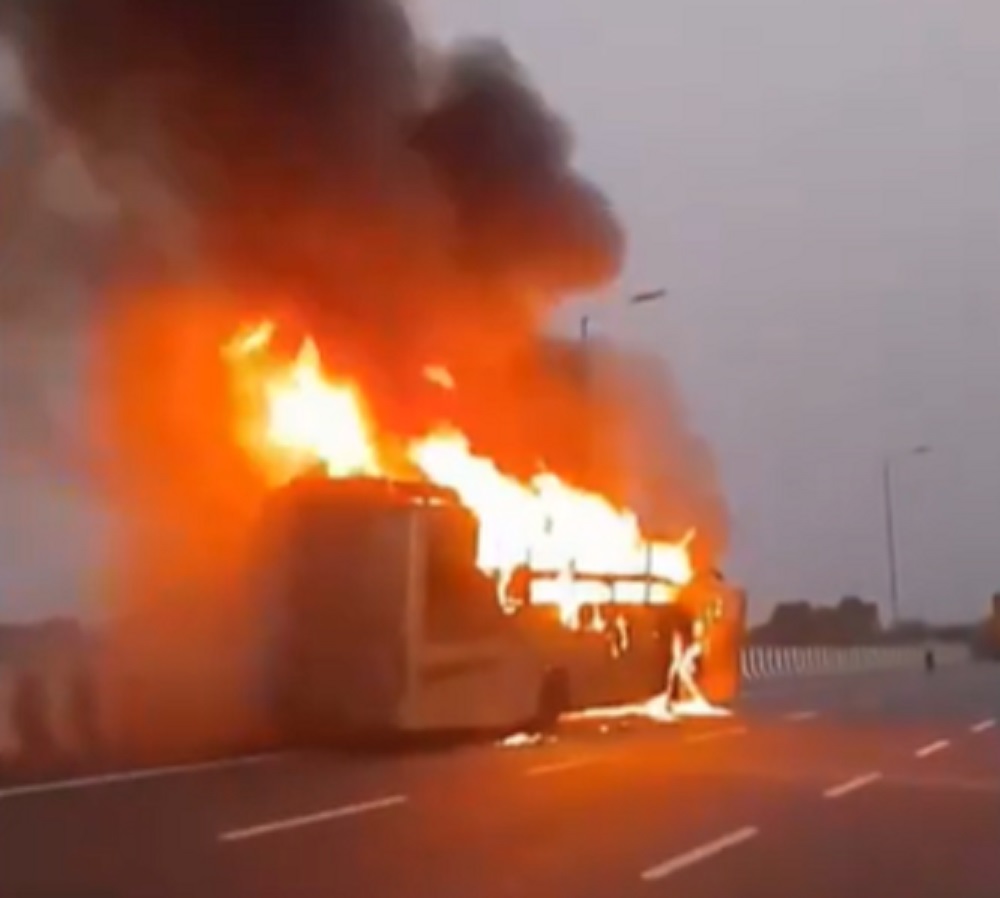 बिहारबाट दिल्ली गइरहेको बसमा आगलागी हुँदा २ बालबालिकासहित ५ जनाको मृत्यु