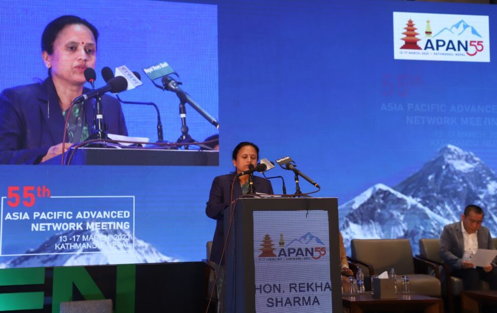 काठमाडौँ, १ चैत । एसिया प्रशान्त क्षेत्रका १७ देशका राष्ट्रिय अनुसन्धान तथा शैक्षिक सञ्जाल संस्थाहरुको सहकार्यमा स्थापित एशिया प्यासिफिक एडभान्स नेटवर्कको ५५औं अन्तराष्ट्रिय सम्मेलन सुरु भएको छ । नेपालमा पहिलो पटक आयोजना भएको कार्यक्रममा विभिन्न १७ देशका ३०० जना बढिको उपस्थिति रहेको छ । आज मंगलबार संचार तथा सूचना प्रविधि मन्त्रि रेखा शर्माले कार्यक्रमको उद्घाटन गर्नुभएको हो ।