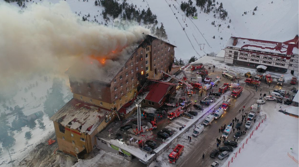 मंगलबार बिहान लागेको आगो १२ तले काठको होटलमा द्रुत गतिमा फैलिएको थियो। चौथो तल्लामा रहेको रेस्टुरेण्ट क्षेत्रमा आगो लागेको थियो। घटनासँग सम्बन्धित नौ जनालाई हिरासतमा लिइएको गृहमन्त्री अली येर्लिकायाले बताए। घटनास्थलमा पत्रकारहरूसँग कुरा गर्दा येर्लिकायाले घटनास्थलमा खोज र उद्धार कार्य पूरा भएको पुष्टि गरे। दुई हप्ताको विद्यालय बिदाका कारण रिसोर्टको पर्यटकीय शिखरमा आगलागी हुँदा होटलमा २३८ जना दर्ता गेस्ट रहेको येर्लिकायाले बताए ।