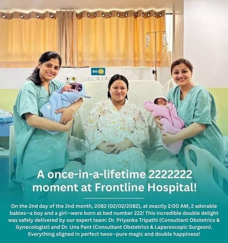 सबै कुरा अचम्मको संयोगमा जुधेको देखियो — मिति ०२/०२, समय २:००, बेड नं. २२२, अनि दुई शिशु ! यो संयोगले फ्रन्टलाइन अस्पतालमा खुशीको दोब्बर माहोल सिर्जना गरेको छ।