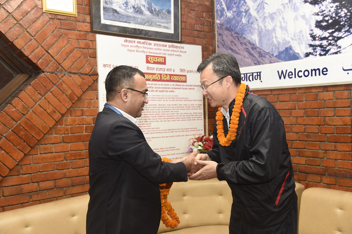 उहाँहरुलाई त्रिभुवन अन्तरराष्ट्रिय बिमानस्थलको विशिष्ट कक्षमा महानगरपालिकाका निर्देशक महेश काफ्ले र अन्तरराष्ट्रिय सम्बन्ध सचिवालयका प्रमुख यम बसेलले स्वागत गर्नुभएको थियो ।