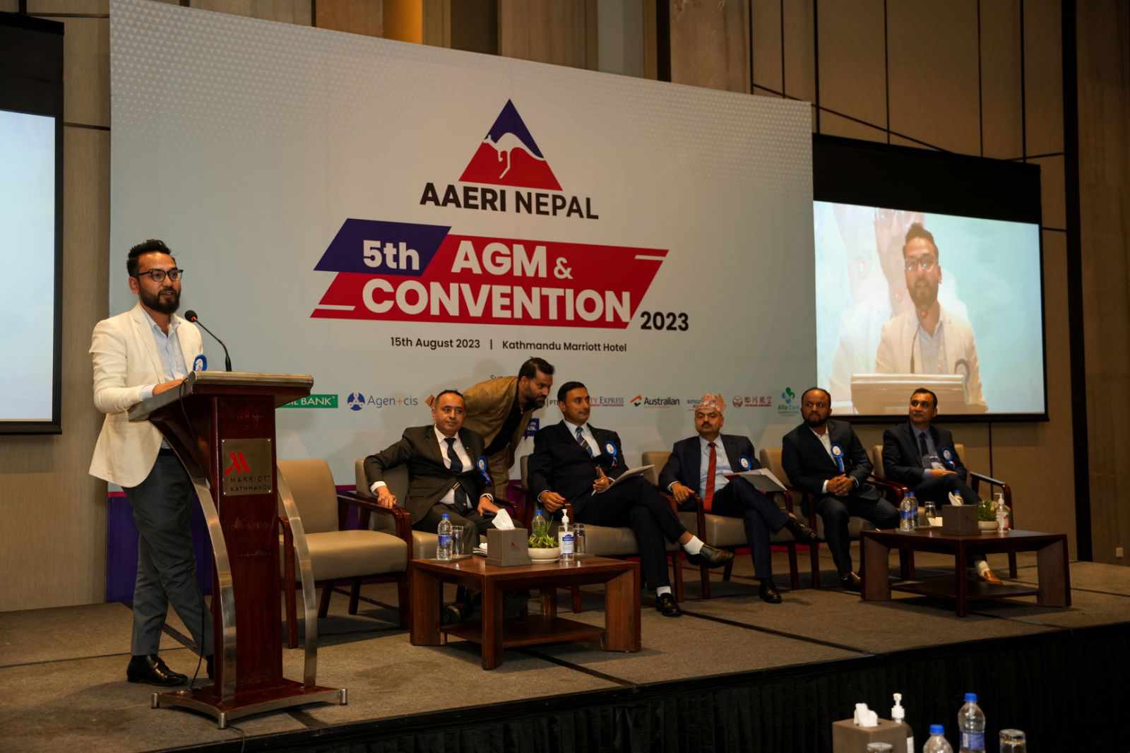 काठमाडौँ, ३१ साउन । ‘असोसिएसन अफ अष्ट्रेलियन एजुकेशन रिप्रेजेन्टेटिभ्स इन नेपाल’ (एरी नेपाल) को ५ औं वार्षिक साधारण सभा र सम्मेलन काठमाडौंको म्यारिअट होटलमा आयोजना गरिएको थियो । कार्यक्रमको सुरूवात नेपाल र अष्ट्रेलियाको राष्ट्रिय गान सँगै पानसमा दिप प्रज्वलन गरी कार्यक्रमको समुद्घाटन गरीएको थियो ।