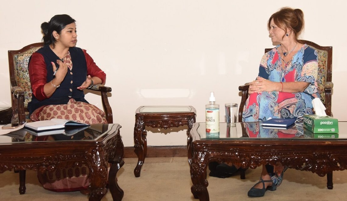 काठमाडौँ । काठमाडौँ महानगरकी उपप्रमुख सुनिता डंगोलसँग नेपालका लागि अष्ट्रेलियाकी राजदूत फेलिसिटी भोल्कले शिष्टाचार भेट गर्नुभएको छ । सोमबार राष्ट्रिय सभा गृहमा भएको भेटका बेला समावेशी सहर व्यवस्थापन सिकाइ अभ्यासका विषयमा कुराकानी भएको थियो । त्यस अवसरमा राजदूत भोल्कले उपप्रमुख डंगोललाई २ हप्ते क्षमता विकास तालिमका लागि निमन्त्रणा गर्नुभएको छ ।