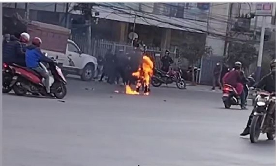 आचार्यले आफैमाथि पेट्रोल छर्केर आत्मदाहको प्रयास गरेका हुन्।