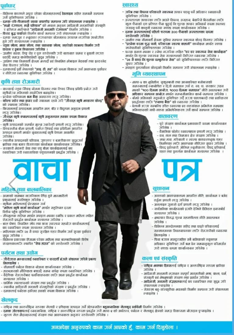 घोषणापत्र सार्वजनिक गर्दै उनले आफू संघीय सांसद भएको हैसियतले बेथिति र भ्रष्टाचार विरुद्ध संसदको अग्रपंक्तिमा उभिने बताएका छन् ।