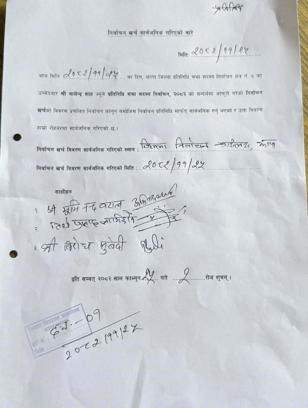 घरदैलो अभियानका लागि १५ दिनसम्म वडा स्तरमा कार्यक्रम सञ्चालन गर्दा ५ लाख ८० हजार रुपैयाँ खर्च भएको उनले बताएका छन्। नमुना मतपत्र छपाइमा ४९ हजार रुपैयाँ, क्षेत्रीय निर्वाचन कार्यालय सञ्चालनमा १ लाख २० हजार रुपैयाँ र स्टेशनरीमा २२ हजार रुपैयाँ खर्च भएको विवरणमा उल्लेख छ।