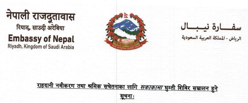 एजेन्सी । रियादस्थित नेपाली राजदूतावासले साउदी अरेबियाको सकाका क्षेत्रमा राहदानी नवीकरण तथा श्रमिक सचेतनाका लागि घुम्ती शिविर सञ्चालन गर्ने भएको छ। राजदूतावासबाट टाढा रहेका सेवाग्राहीलाई पायक पर्ने स्थानमै सेवा प्रदान गर्ने उद्देश्यले उक्त शिविर आयोजना गर्न लागिएको हो।