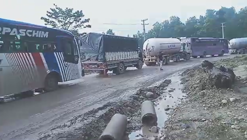 काठमाडौँ । नारायणघाट–बुटवल सडक विस्तारअन्तर्गत नवलपरासीको दाउन्ने खण्डमा सवारी आवागमन अत्यन्तै कष्टकर बनेको छ। शीतलहरका कारण निर्माणाधीन सडक सतह चिप्लो भएपछि यात्रा जोखिमपूर्ण भएको हो। सडकमा हिलो बढ्दा ट्रक, बस तथा निजी सवारी साधन उकालोमा चिप्लिने र अड्किने समस्या देखिएको छ, जसले लामो जाम सिर्जना गरेको छ।