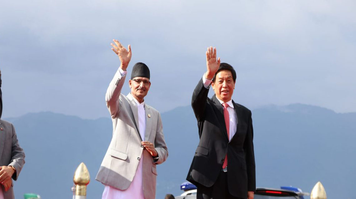 काठमाडौँ ,२७ भदौ|चीनका राष्ट्रिय जनकङ्ग्रेस स्थायी समिति अध्यक्ष ली चान्सु चार दिने औपचारिक नेपाल भ्रमणमा आइपुगेका छन् ।उनी विशेष विमानबाट अपराह्न काठमाडौँ आएका हुन । अध्यक्ष लीलाई त्रिभुवन अन्तर्राष्ट्रिय विमानस्थलमा सभामुख सापकोटाले स्वागत गरे । विमानस्थलमा परराष्ट्र मन्त्रालयका उच्च अधिकारीहरु उपस्थित थिए ।