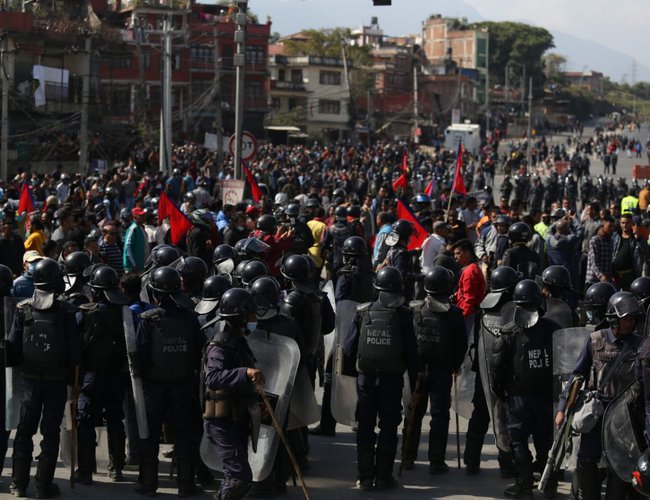 काठमाडौं । काठमाडौंको तीनकुने क्षेत्रमा आज राजावादी समूह र प्रहरीबीच झडप भएको छ। राजावादी प्रदर्शनकारीहरूले बानेश्वरतर्फ बढ्न खोज्दा सुरक्षाकर्मीहरूले रोक लगाएपछि झडपको स्थिति उत्पन्न भएको हो।