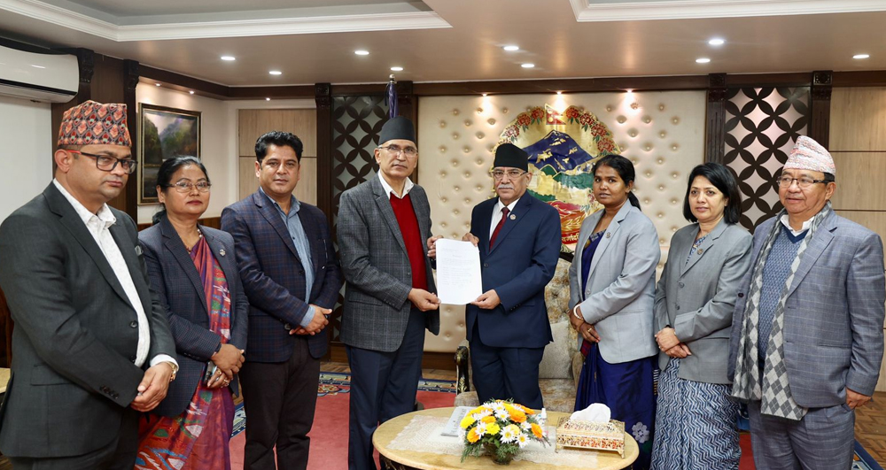 काठमाडौँ, १५ फागुन । नेकपा एमालेका तर्फबाट मन्त्रिमण्डलमा समावेश सबै मन्त्रिहरुले सामुहिक राजिनामा दिएका छन् । आज सोमबार प्रधानमन्त्रि प्रचण्डलाई भेटेर उपप्रधान तथा अर्थमन्त्रि विष्णु पौडेलको नेतृत्वमा सरकारमा समावेश सबै ७ जना मन्त्रिहरुले राजिनामा बुझाएका हुन् ।