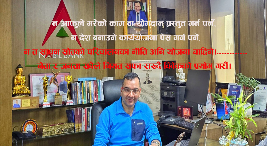 काठमाडौँ । नबिल बैक, प्रमुख कार्यकारी मनोज ज्ञवालीले हालको राजनीतिक अवस्था देशका लागि चुनौतीपूर्ण भएको बताएका छन्। ज्ञवालीले आफ्नो फेसबुक वालमा पनि यस सम्बन्धमा गम्भीर विचार ब्यक्त गरेका छन्।