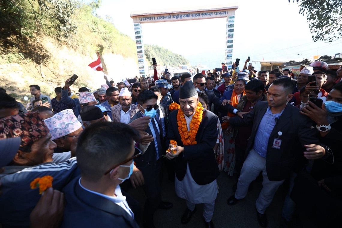 काठमाडौँ, १७ कार्तिक। नेपाली कांग्रेसका सभापति एवं प्रधानमन्त्री शेरबहादुर देउवा गृह जिल्ला डडेल्धुरा पुगेका छन्। देउवा चुनावी प्रचारप्रसारका लागि आयोजित आमसभालाई सम्बोधन गर्न आज डडेल्धुरा पुगेका हुन्।