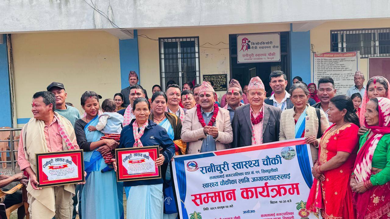 रानीचुरी स्वास्थ्य चौकी तथा कमलामाई नगरपालिका स्वास्थ्य शाखाको संयुक्त आयोजनामा सम्पन्न कार्यक्रममा वडा नं. ११ का अध्यक्ष तथा स्वास्थ्य चौकी व्यवस्थापन समितिका अध्यक्ष राम बहादुर थिङको अध्यक्षतामा सम्मान कार्यक्रम भएको हो। कार्यक्रममा वडा सदस्यहरू, नगरपालिकाका स्वास्थ्य शाखा प्रमुख, रानीचुरी स्वास्थ्य चौकीका प्रमुख, वडा सचिव, कर्मचारी तथा स्थानीय भद्रभलादमीहरूको उपस्थिति रहेको थियो।
