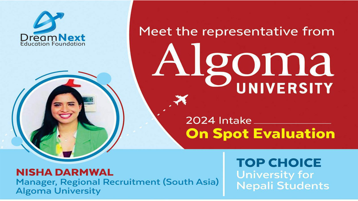 उक्त कार्यक्रममा विद्यार्थीहरूले रिज्नल रिक्रुटमेन्ट म्यानेजर अफ साउथ एसिया निशा डर्मवालबाट क्यानाडामा अल्गोमा विश्वविद्यालयका अद्भुत अवसरहरू र अध्ययनका बारेमा थप जानकारी प्राप्त गर्ने  भएका छन्।