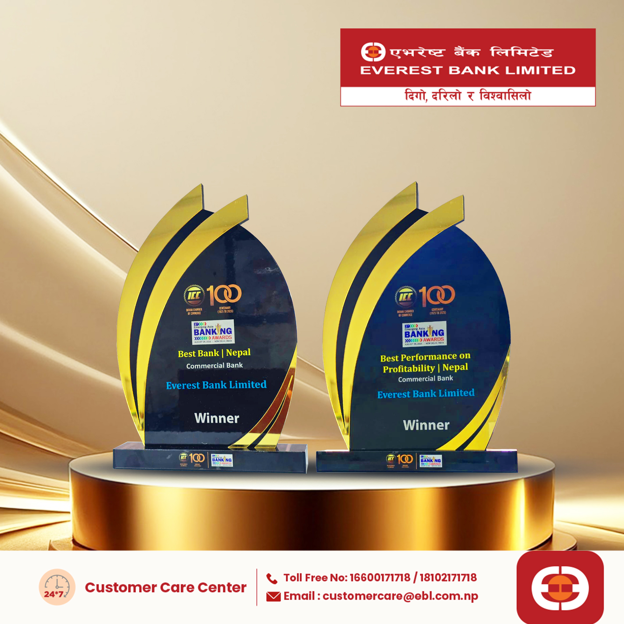 एभरेष्ट बैंकले हालसालै डिजिटल बैंकिङ, ग्राहक सेवा सुधार र प्रभावकारी वित्तीय नीतिहरू लागू गर्दै आफ्नो प्रतिष्ठा मजबुत पार्दै आएको छ। यी सम्मानहरूले बैंकलाई आगामी दिनमा अझ बढी प्रभावकारी वित्तीय सेवा र परिणाममुखी कार्यसम्पादन गर्न प्रेरणा दिने अपेक्षा गरिएको छ।