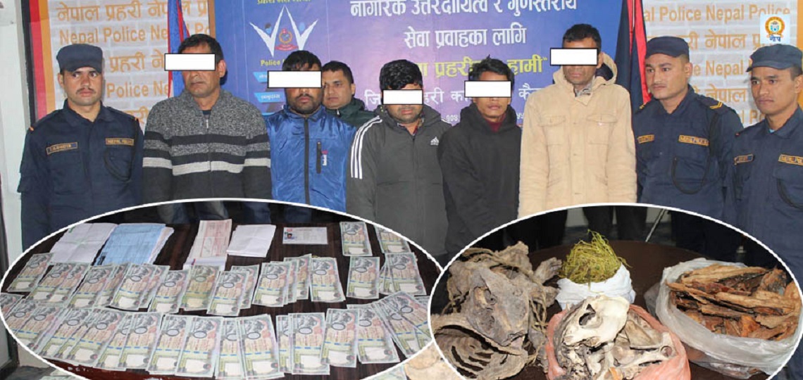 नक्कली नोट र वन्यजन्तुको हड्डीसहित पाँच जना पक्राउ
