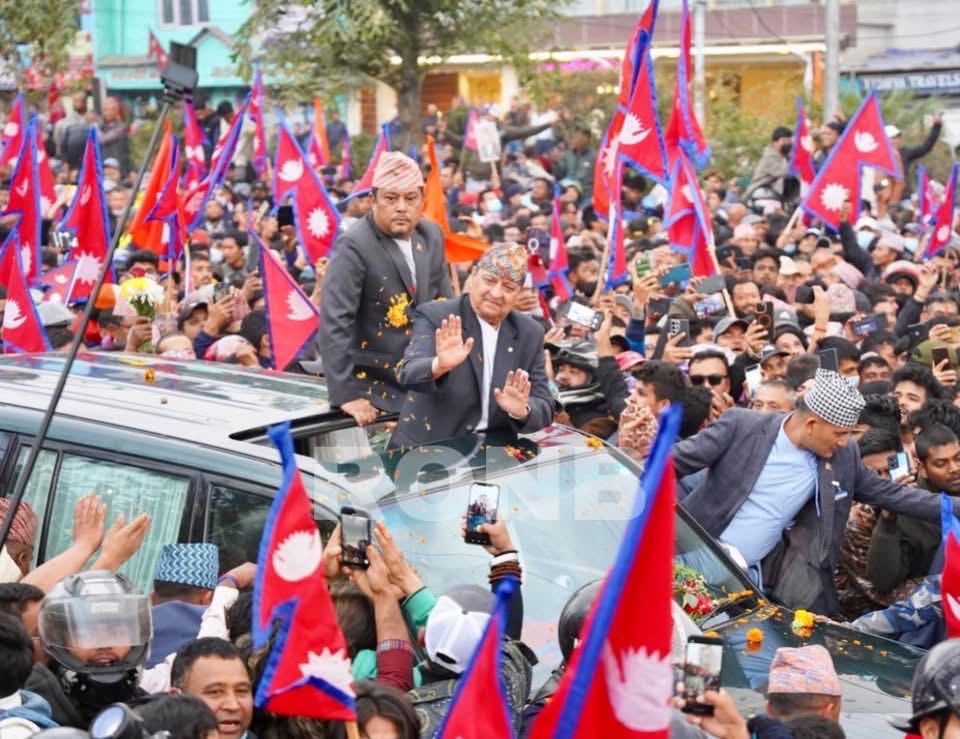 पूर्वराजा शाह पोखराबाट विमान चार्टर्ड गरी काठमाडौं आउन लागेपछि उनका समर्थकहरू सडकमा उत्रिएका थिए। विमानस्थलको गोल्डेन गेट अगाडि राजावादी समूहले ठूलो संख्यामा प्रदर्शन गरेपछि चाबहिलदेखि तीनकुनेसम्मको सडक अस्तव्यस्त बनेको थियो। अवस्था नियन्त्रण गर्न सो क्षेत्रमा चल्ने सवारीसाधन डाइभर्ट गरिएको थियो।