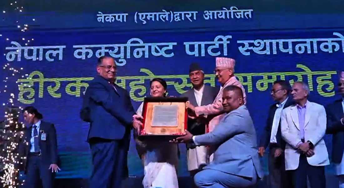 नेकपा स्थापनाको हिरक जयन्ती महोत्सवमा पूर्वराष्ट्रपति भण्डारी ‘राष्ट्रिय गौरव’ पदकबाट सम्मानित