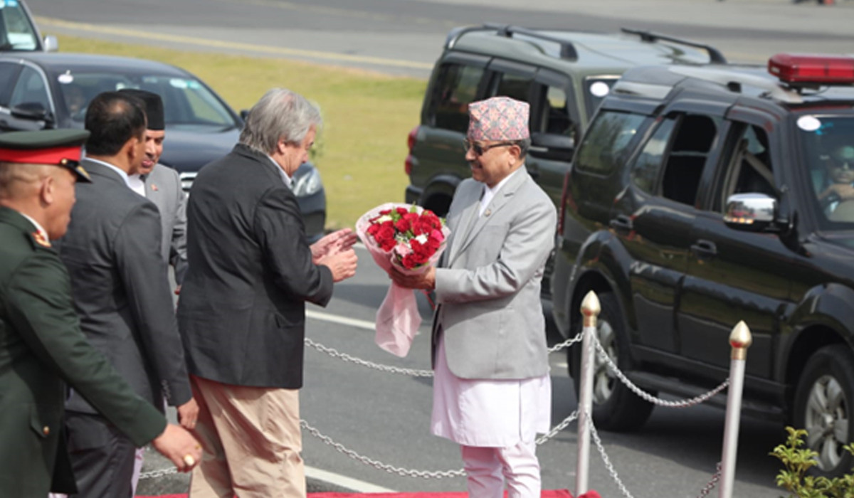 प्रधानमन्त्री पुष्पकमल दाहाल ‘प्रचण्ड’को मैत्रीपूर्ण निमन्त्रणामा उनी नेपालको औपचारिक भ्रमणका लागि यही कात्तिक १२ गते यहाँ आएका थिए । महासचिव गुटेरेसले भ्रमणका क्रममा राष्ट्रपति रामचन्द्र पौडेल र प्रधानमन्त्री पुष्पकमल दाहालसँग छुट्टाछुट्टै भेटवार्ता गरेका थिए।