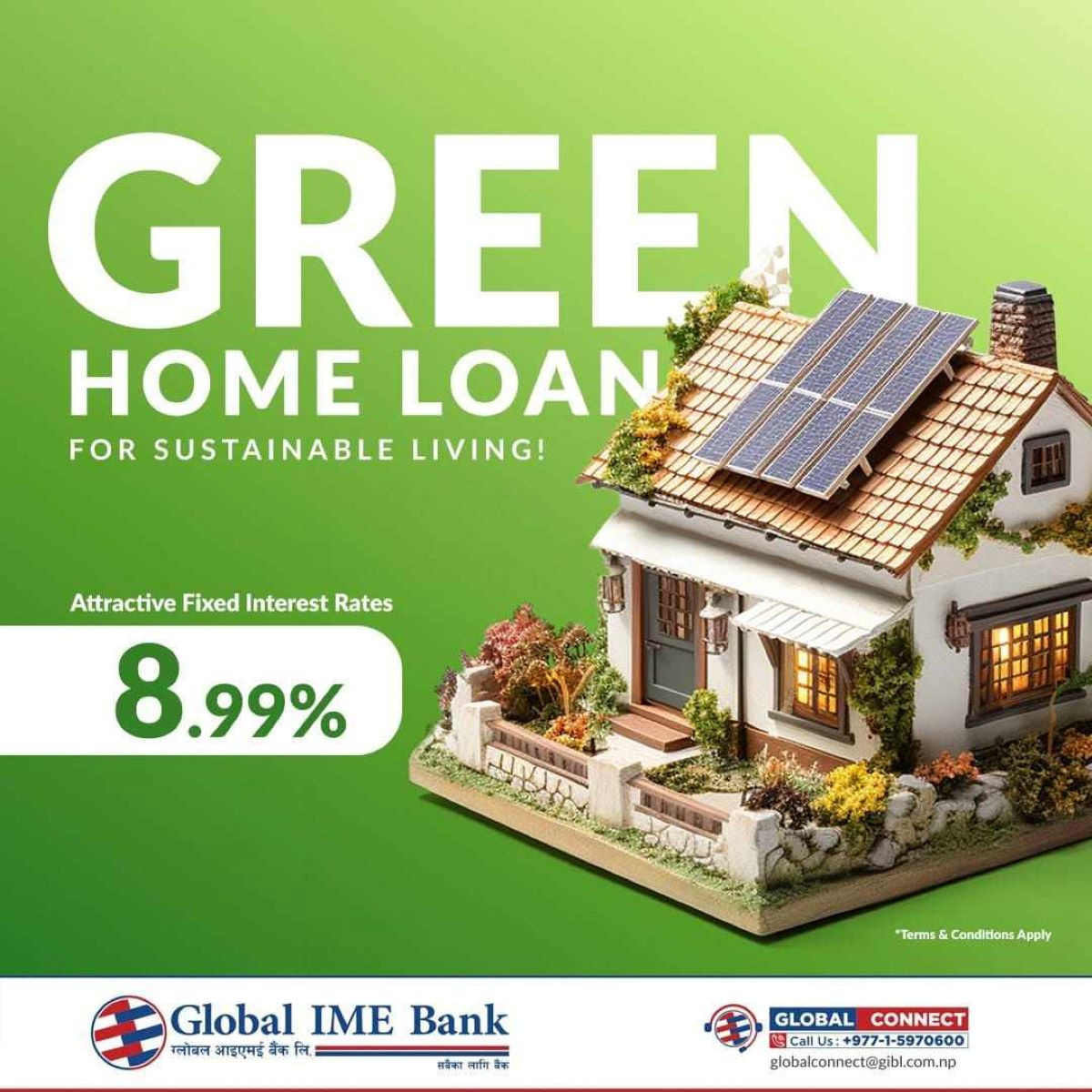 ग्लोबल आइएमई बैंकको ग्लोबल ग्रीन आवास कर्जा, ८.९९ प्रतिशत स्थिर ब्याज दर