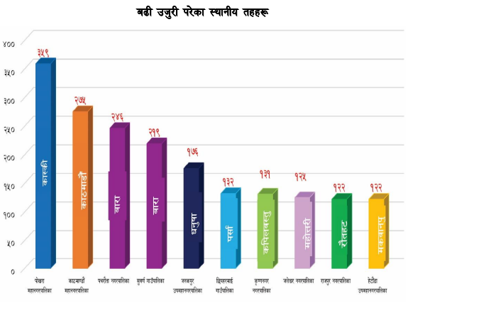 अन्य बढी उजुरी परेका पालिकाहरूमा छिपहरमाई गाउँपालिका (पर्सा) — १३२, कृष्णनगर नगरपालिका (कपिलवस्तु) — १३१, जलेश्वर नगरपालिका (महोत्तरी) — १२५, राजपुर नगरपालिका (रौतहट) — १२२ र हेटौंडा उपमहानगरपालिका (मकवानपुर) — १२२ उजुरीका साथ सूचीकृत छन्।