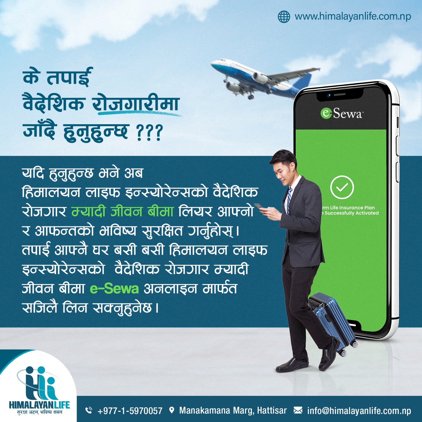 काठमाण्डौ । वैदेशिक रोजगारीमा जाने व्यक्तिहरूका लागि सुरक्षा प्रदान गर्ने उद्देश्यले हिमालयन लाइफ इन्स्योरेन्सले वैदेशिक रोजगार म्यादी जीवन बीमा योजना सञ्चालनमा ल्याएको छ। कम्पनीका अनुसार, यस योजनाले वैदेशिक रोजगारमा जाने व्यक्ति तथा उनीहरूका परिवारलाई आर्थिक सुरक्षा प्रदान गर्नेछ।