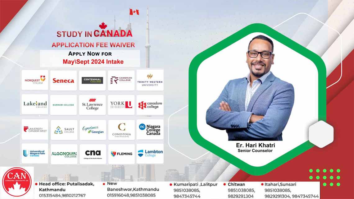 क्यान कन्सल्टिङ सर्भिसका सिनियर कोउन्सिलर ईन्जिनियर हरी खत्री ब्यक्तिगत रुपमै विद्यार्थीहरुलाई भेटेर क्यानडा सरकारको हालको अप्डेटेड नितिहरुको बारेमा जानकारी गराउन हाल क्यानाडाबाट नेपाल आएका छन ।