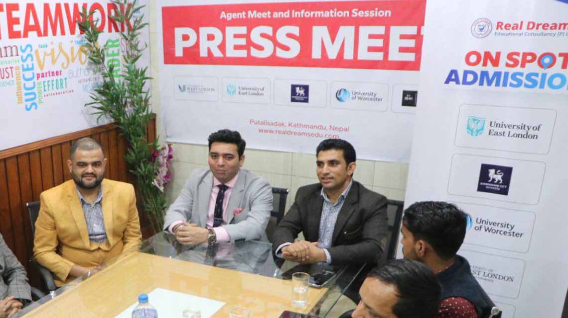 पुतलीसडकमा रहेको रिएल ड्रीम्सले आफ्नै कार्यालयमा एक पत्रकार सम्मेलनको आयोजना सो कुरोको जानकारी गराएको हो । उक्त पत्रकार सम्मेलनमा रियल ड्रीम्सका डाइरेक्टर बसन्त नेपालले आफु बेलायतको एजुकेशन सिस्टममा आएको परिवर्तन, भिजा प्रोसेसीङ, बेलायतका उत्कृष्ट विश्वविद्यालयहरूको बारेमा युनिभर्सिटीकै प्रतिनीधीलाई बिध्यार्थीहरू र च्यानल पाट्नरहरूसंग साक्षात्कार गराउने उदेश्यका साथ आफु नेपाल आई सप्ताह ब्यापी इन्फर्मेसन सेसन आयोजना गरेको पत्रकार सम्मेलन मार्फत जानकारी गराउनु भयो।