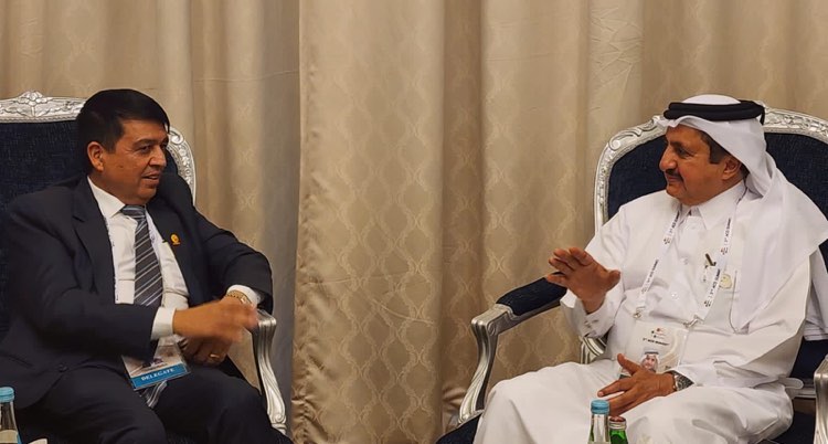 नेपाल कतार बिजनेस काउन्सिलको पहिलो अध्यक्षस्तरिय वैठकमा अध्यक्ष थानी र महासंघ अध्यक्ष चन्द्र प्रसाद ढकाल एवं प्रतिनिधिमण्डलबीच बुधबार कतारको राजधानी दोहामा सम्पन्न वैठकमा आर्थिक सम्बन्ध विस्तारका बिषयमा छलफल भएको हो ।