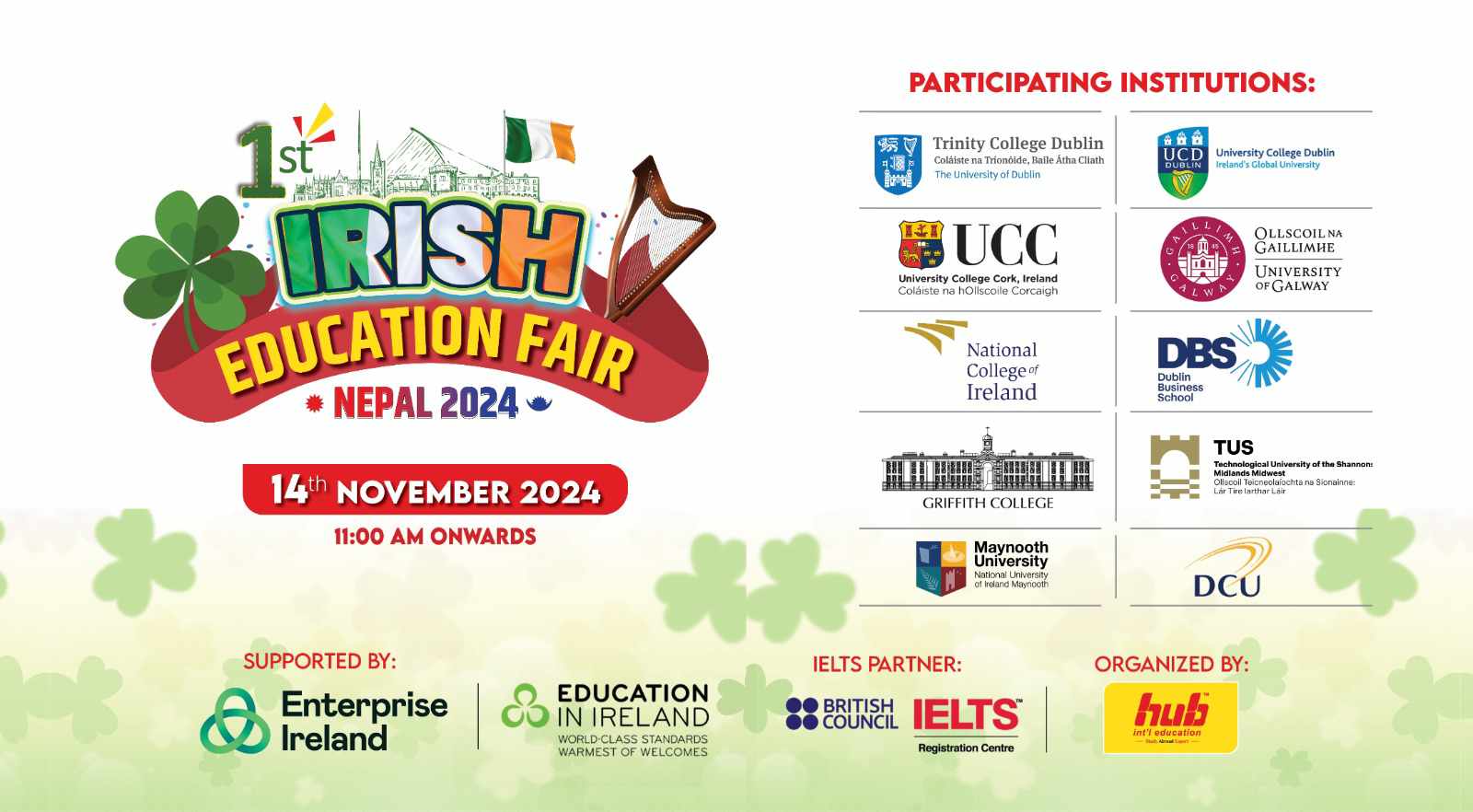 आयरल्याण्डले आफ्नो उच्च गुणस्तरको शिक्षा, अध्ययनपछि उपलब्ध कार्य अवसर र स्वागतपूर्ण संस्कृतिका कारण अन्तर्राष्ट्रिय विद्यार्थीहरूको लागि आकर्षक गन्तव्यको रूपमा आफ्नो स्थान बनाइसकेको छ। हब इन्टरनेसनलका अनुसार, यस शैक्षिक मेलामा भाग लिने विद्यार्थीहरूलाई भर्ना प्रक्रिया, शैक्षिक कार्यक्रम, र करियरका अवसरहरूको बारेमा महत्त्वपूर्ण जानकारी प्राप्त हुनेछ।