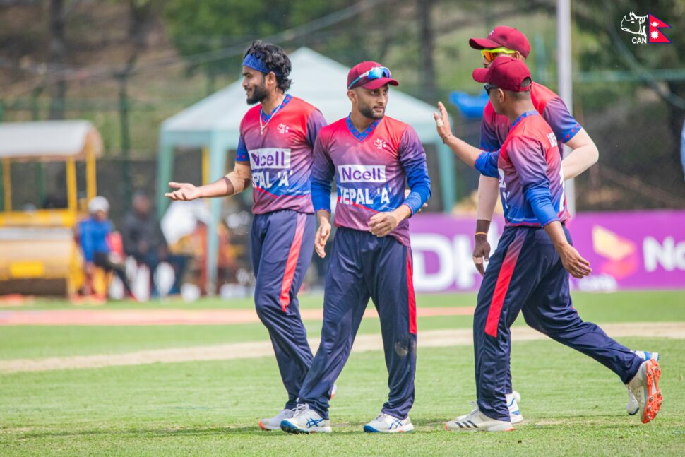 कीर्तिपुरको त्रिवि क्रिकेट मैदानमा टस हारेर ब्याटिङ गरेको आयरल्यान्ड–उल्भ्सले २० ओभरमा ५ विकेट गुमाएर २ सय २२ रन बनायो । आयरल्यान्ड–उल्भ्सका पिटर मूरले ४९, केड कारमाइकल र कप्तान निल रकले समान ३८, स्टेफेन डोहेनेले ३४, ग्यारेथ डिलेनेले नट आउट ३० रन बनाए । बलिङतर्फ नेपाल ‘ए’ का कमलसिंह ऐरीले ३ तथा सागर ढकाल र आरिफ शेखले समान १ विकेट लिए ।