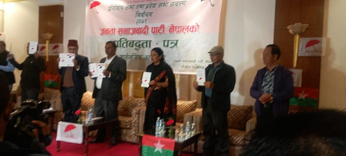 काठमाठौँ ,१९ कात्तिक | जनता समाजवादी पार्टी (जसपा) ले आगामी निर्वाचनको चुनावी घोषणापत्र सार्वजनिक गरेको छ । जसपाले सार्वजनिक गरेको प्रतिबद्धता पत्रमा संविधान संशोधन, परिमार्जन तथा पुनर्लेखनको आवश्यकतालाई पनि उल्लेख गरिएको छ ।
