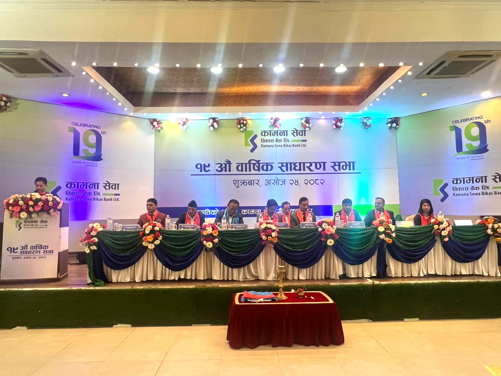 १९औं साधारणसभामा कामना सेवा विकास बैंकले पारित गर्‍यो वार्षिक प्रतिवेदन र लाभांश प्रस्ताव