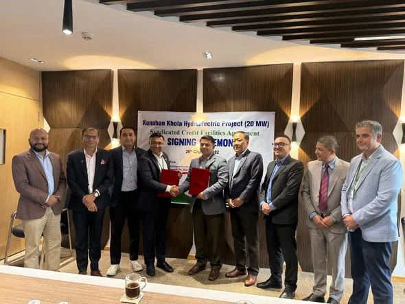 • काठमाडौं । माछापुच्छ्रे बैंक लिमिटेड ले कृषि विकास बैंक लिमिटेड सँगको सहकार्यमा म्याग्दी जिल्लाको धौलागिरी गाउँपालिकामा निर्माण हुन लागेको २० मेगावाट क्षमताको कुनाबन खोला जलविद्युत आयोजना वित्तीय व्यवस्थापन सम्पन्न भएको घोषणा गरेको छ। सुष्मित इनर्जी प्रा.लि. द्वारा प्रवर्द्धित उक्त आयोजनाको कुल लगानी करिब ३ अर्ब रुपैयाँ रहेको छ।