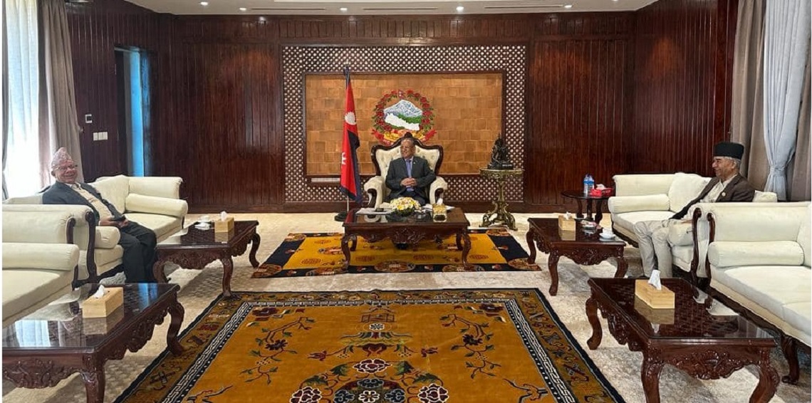 बालुवाटारमा दाहाल , देउवा र नेपालबीच भेटवार्ता