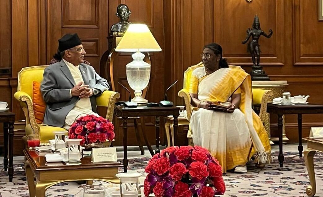 काठमाडौँ, जेठ २८ । प्रधानमन्त्री पुष्पकमल दाहाल ‘प्रचण्ड’ले भारतका राष्ट्रपति द्रौपदी मुर्मुसँग भेटवार्ता गरेका छन् । नयाँ दिल्लीस्थित राष्ट्रपति भवनमा आज प्रधानमन्त्री प्रचण्डले राष्ट्रपति मुर्मुसँग भेट गरेका हुन् । भेटघाटमा राष्ट्रपति मुर्मु र प्रधानमन्त्री प्रचण्डबिच नेपाल–भारतबिच सदियौंदेखि रहिआएको आपसी सम्बन्ध र द्विपक्षीय हितका विविध विषयका साथै दुई देशबिचका जनतामाझको परम्परागत सम्बन्धलाई थप प्रगाढ तुल्याउने विषयमा छलफल भएको थियो ।