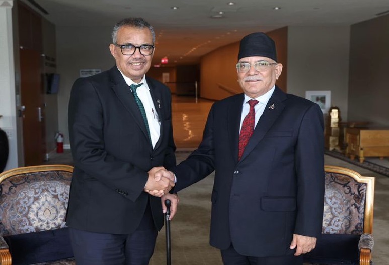 काठमाडौं, ५ असोज । प्रधानमन्त्री पुष्पकमल दाहाल ‘प्रचण्ड’ र विश्व स्वास्थ्य संगठन (डब्लूएचओ)का महानिर्देशक टेड्रोस अधानोम गेब्रेयससबीच भेटवार्ता भएको छ ।