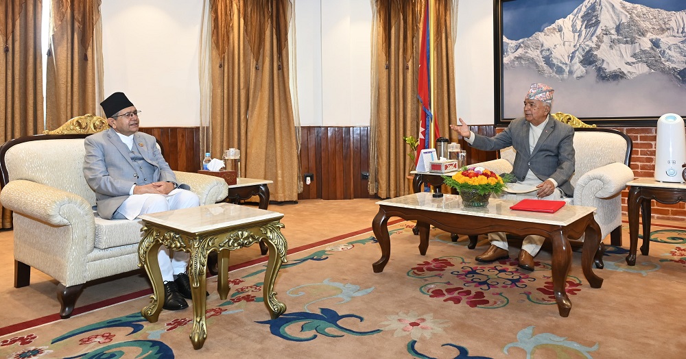काठमाडौँ, साउन ९ । राष्ट्रपति रामचन्द्र पौडेल र सभामुख देवराज घिमिरेबिच राष्ट्रपति निवास शीतल निवासमा भेटवार्ता भएको छ।