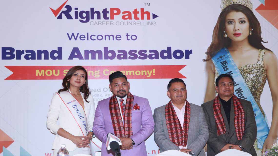 मिस नेपाल वर्ल्ड २०१६ अस्मि श्रेष्ठ राइटपाथ करियर काउन्सिलिङको सद्भावना दूत