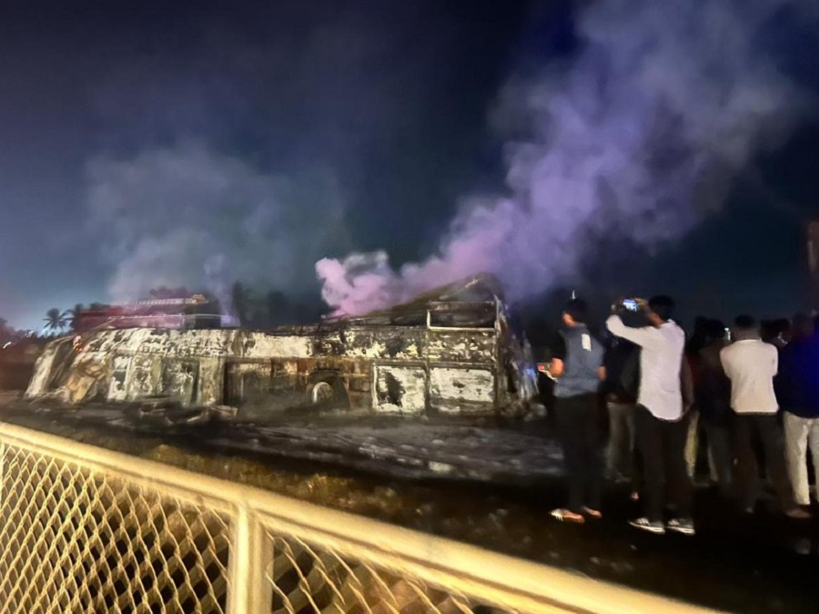 काठमाडौँ — भारतको कर्नाटक राज्यको चित्रदुर्ग जिल्लाको हिरियुर नजिकै राष्ट्रिय राजमार्ग–४८ मा बिहीबार बिहान भएको सवारी दुर्घटनामा ११ भन्दा बढी व्यक्तिको मृत्यु भएको आशंका गरिएको छ। बेंगलुरुबाट शिवमोगा हुँदै गोकर्ण जाँदै गरेको लक्जरी स्लीपर बसलाई पछाडिबाट एउटा कन्टेनर ट्रकले ठक्कर दिँदा बसमा आगलागी भएको थियो।