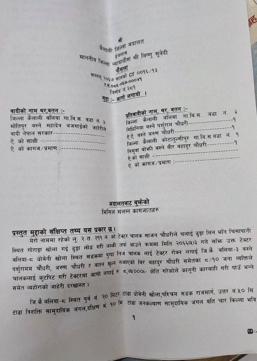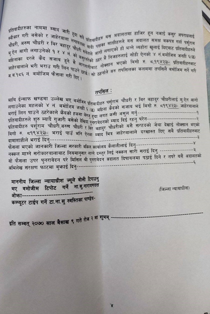 यस्तो छ चौधरीमाथि जिल्ला अदालत कैलालीले २०७० बैशाख ९ गते गरेको फैसलाको पूर्णपाठः