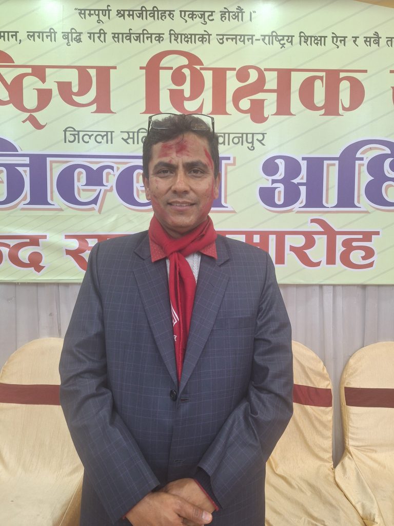 हेटौंडा । नेपाल राष्ट्रिय शिक्षक संगठन मकवानपुरको अध्यक्षमा मुकुन्द न्यौपाने निर्विरोध निर्वाचित भएका छन् । संगठनको हेटौंडामा सम्पन्न १४ औं जिल्ला अधिवेशनले न्यौपानेको अध्यक्षतामा ३१ सदस्यीय कार्यसमिति निर्माण गरेको हो ।